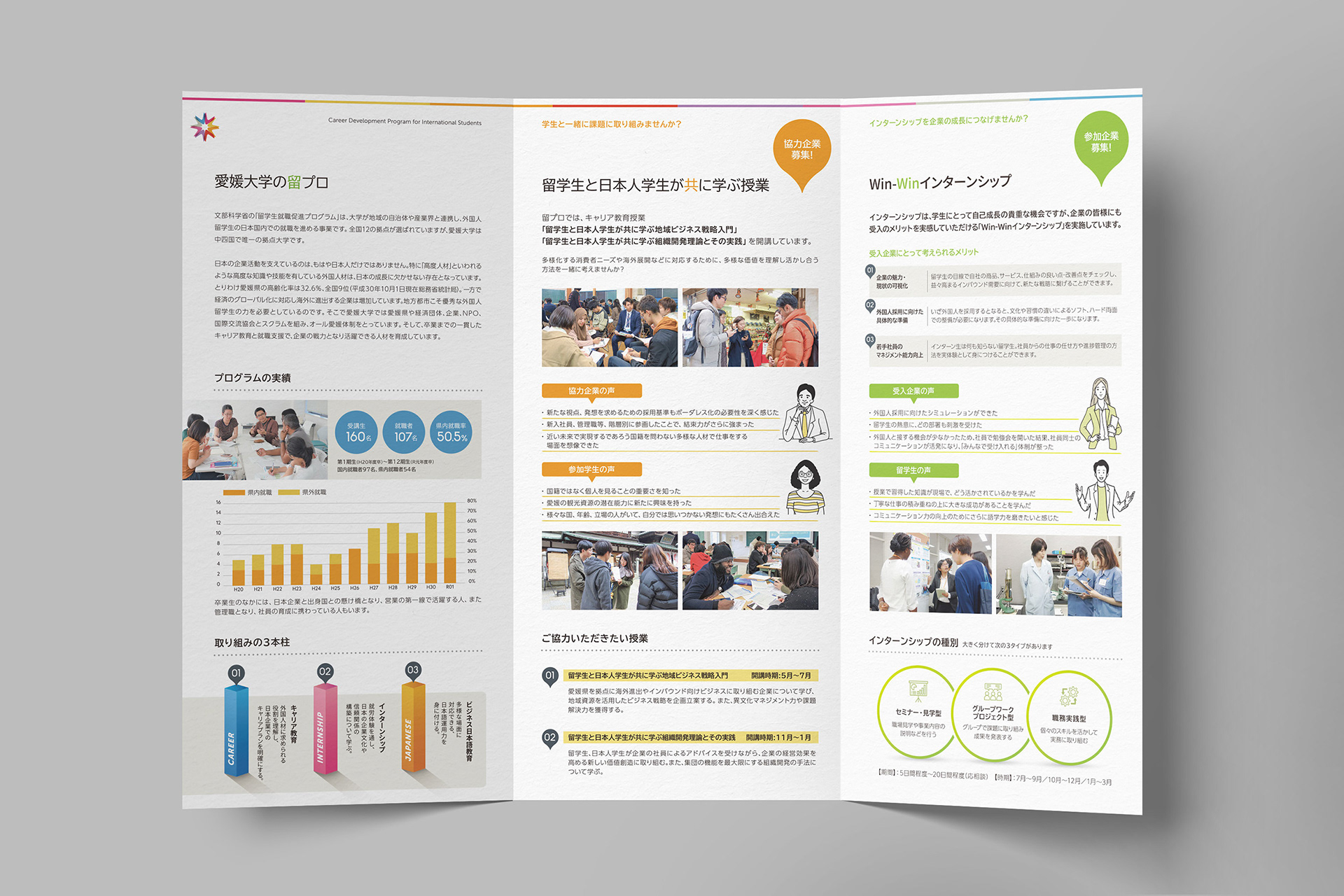文部科学省の「留学生就職促進プログラム」は、大学が地域の自治体や産業界と連携し、外国人留学生の日本国内での就職を進める事業。全国12の拠点が選ばれ、愛媛大学は中四国で唯一の拠点大学です。